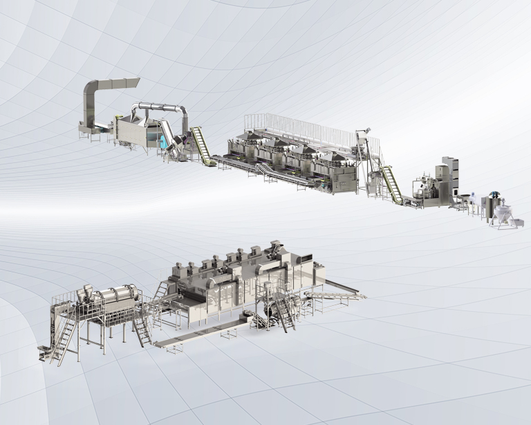 該生產(chǎn)線廣泛用于堅(jiān)果、籽類(lèi)、裹粉顆粒食品、薯片、薯?xiàng)l、膨化食品等加工生產(chǎn)。
